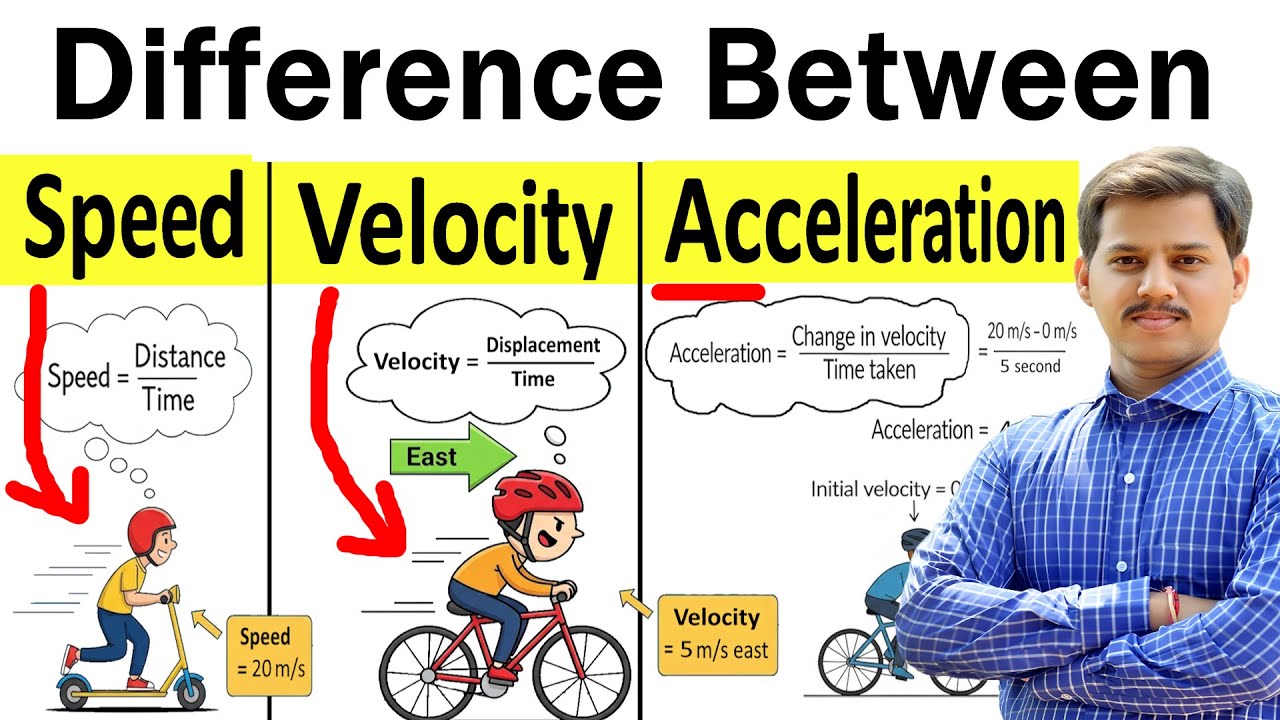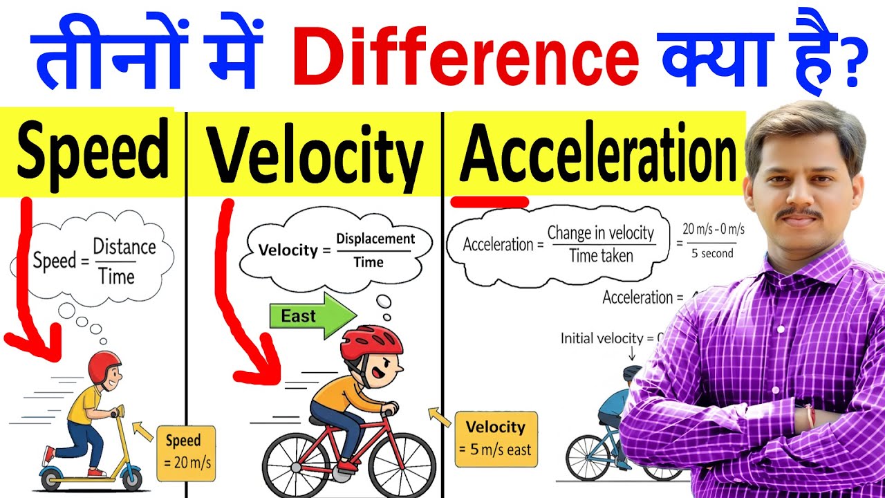 Speed, Velocity and Acceleration Difference Explained in Hindi | Units, Formulas and Examples