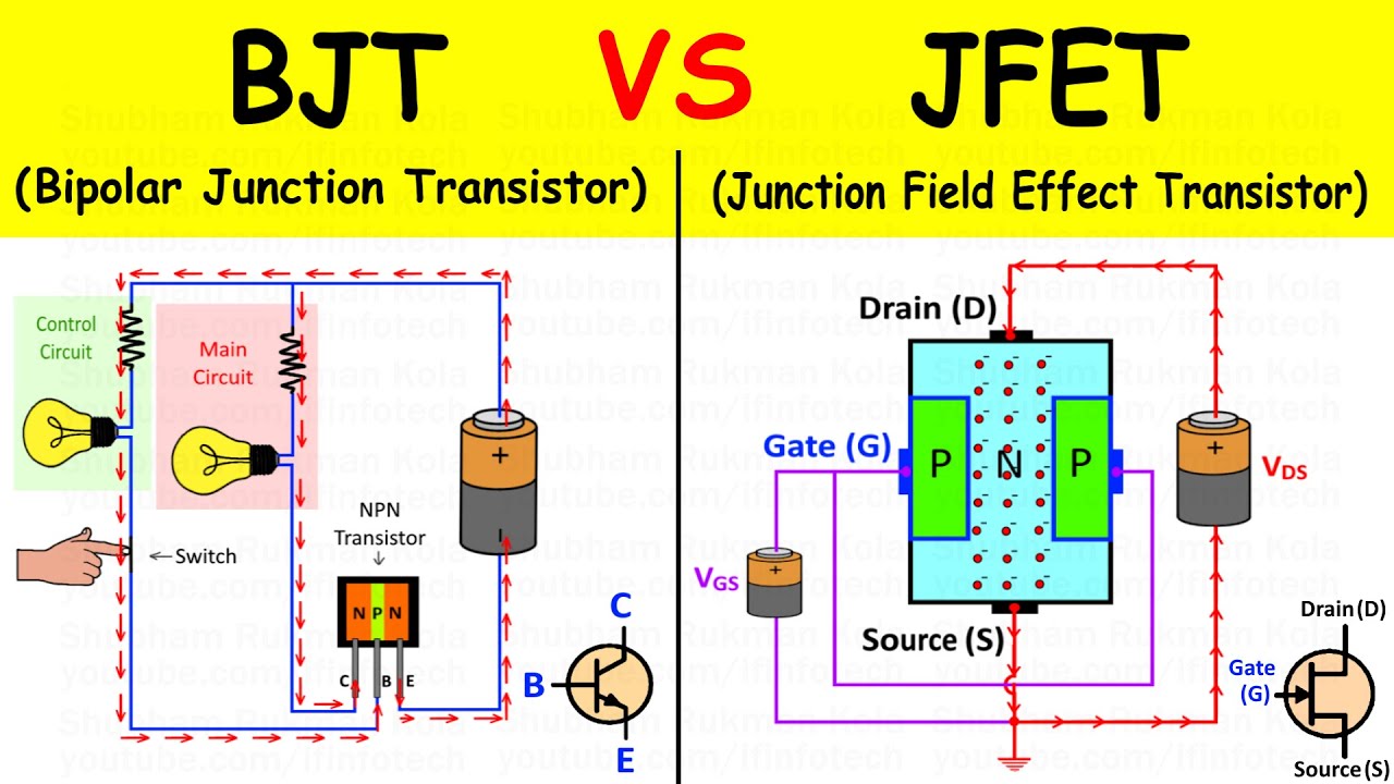 BJT and JFET Transistor Comparison with Diagrams | Working, Differences, Applications | Shubham Kola