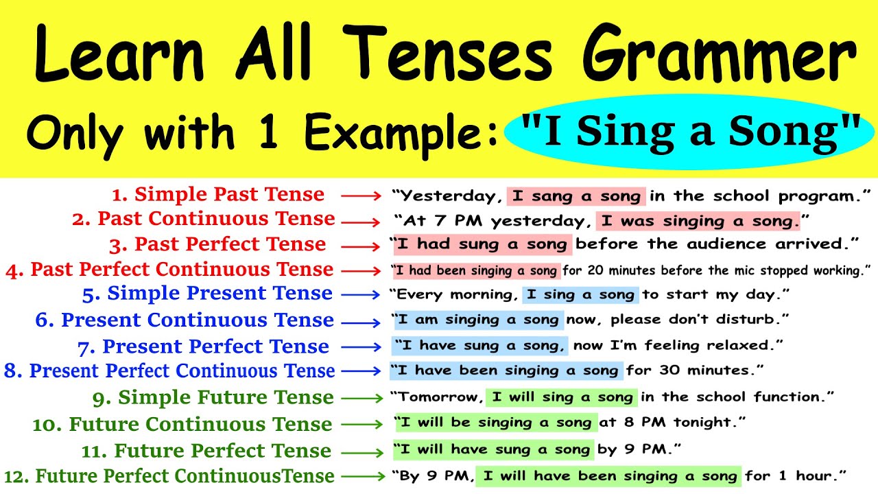 Learn All 12 English Tenses with One Simple Example: I Sing a Song | English Grammar by Shubham Kola