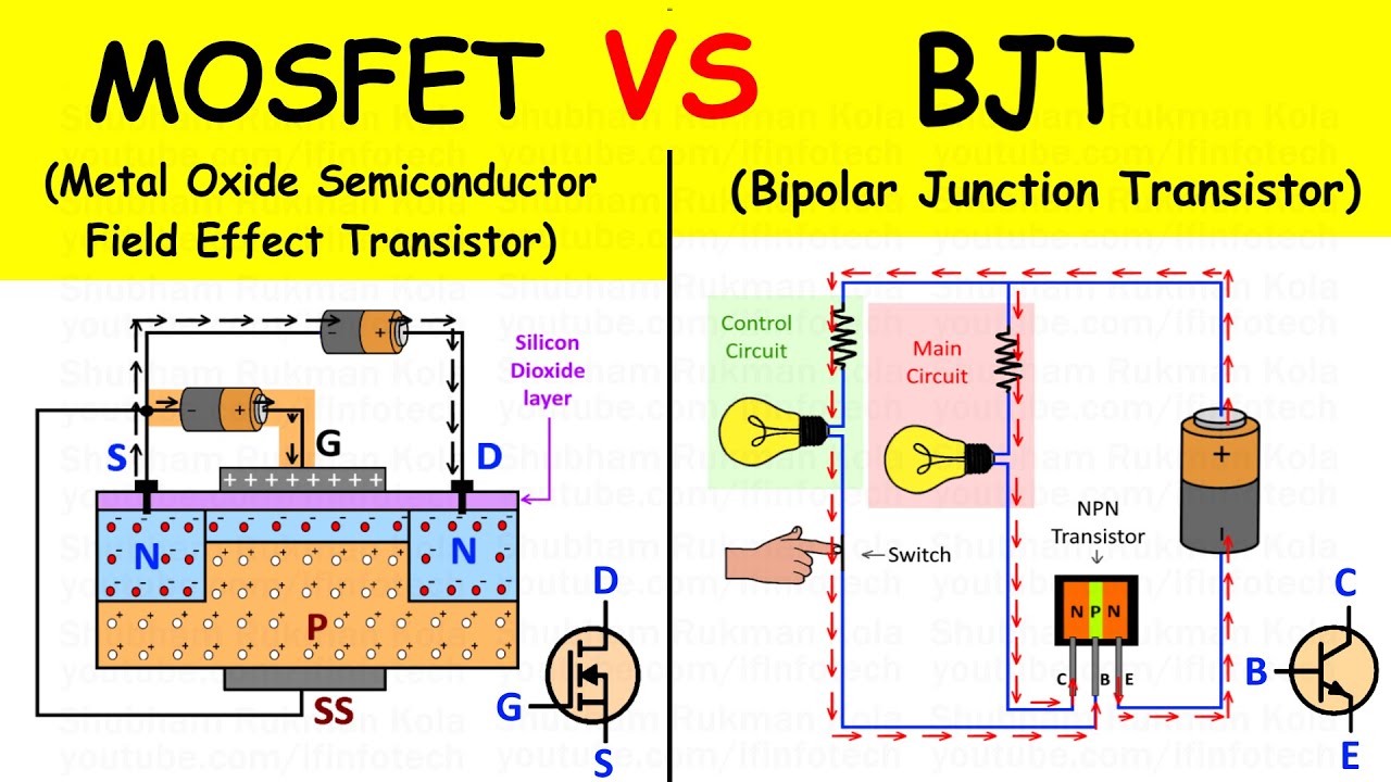 MOSFET and BJT Transistor Comparison with Diagrams | Working, Difference, Application | Shubham Kola