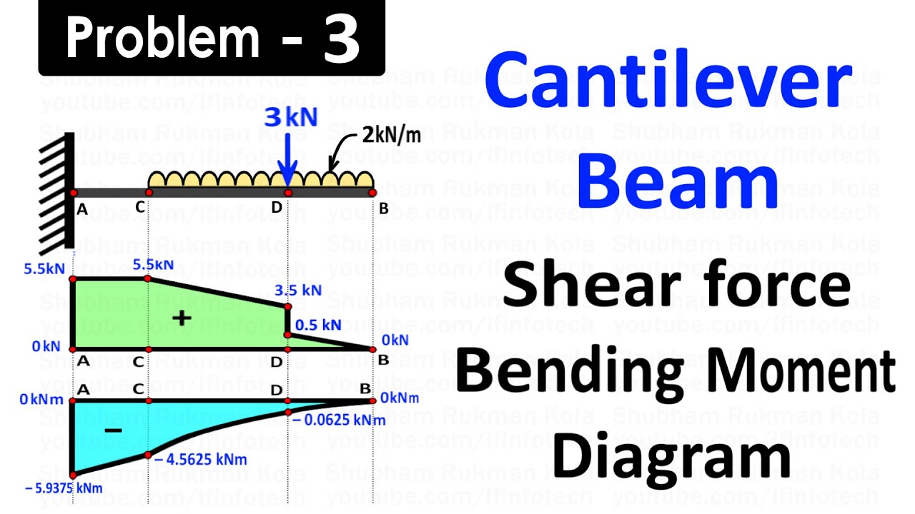 Draw SFD and BMD for Cantilever Beam Carries Uniformly Distributed Load and One Point Load