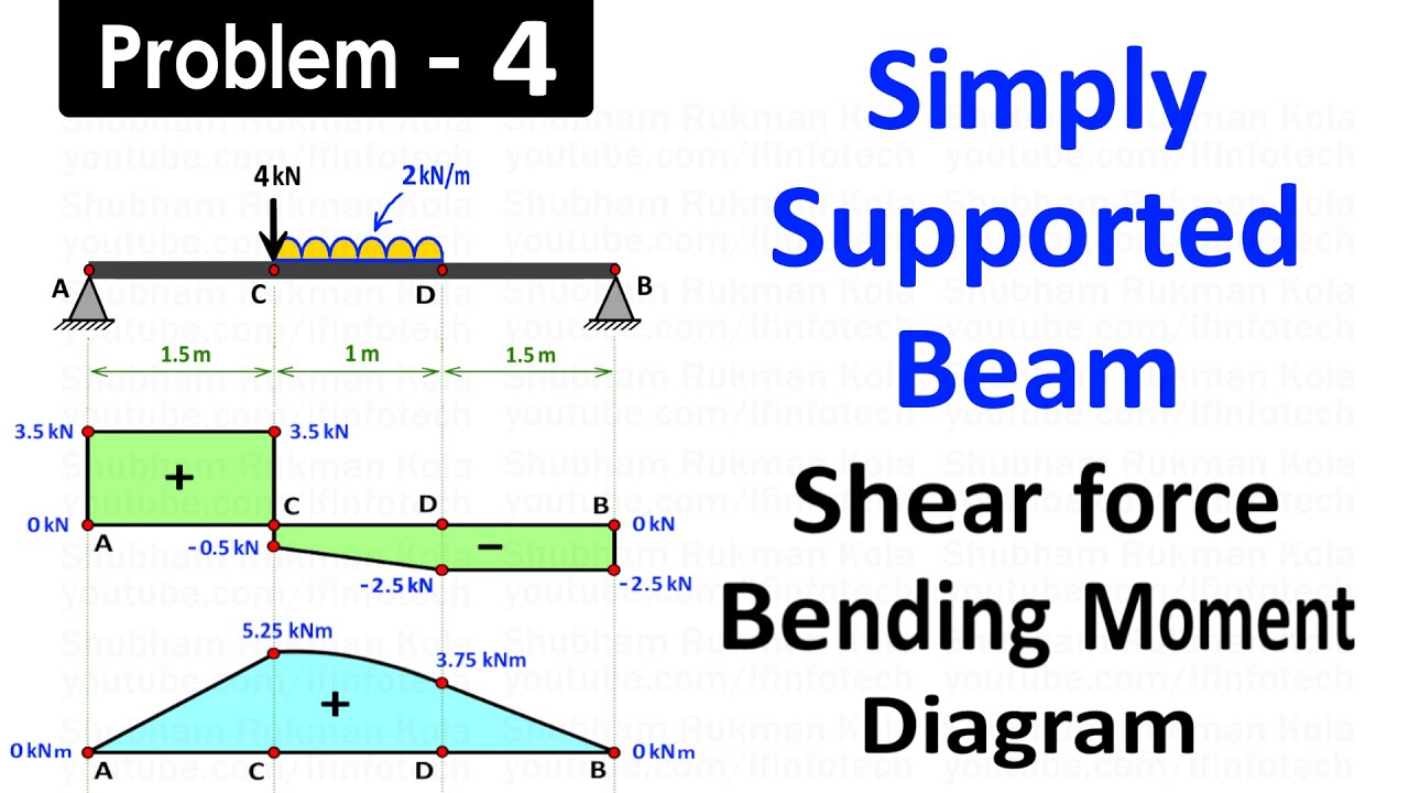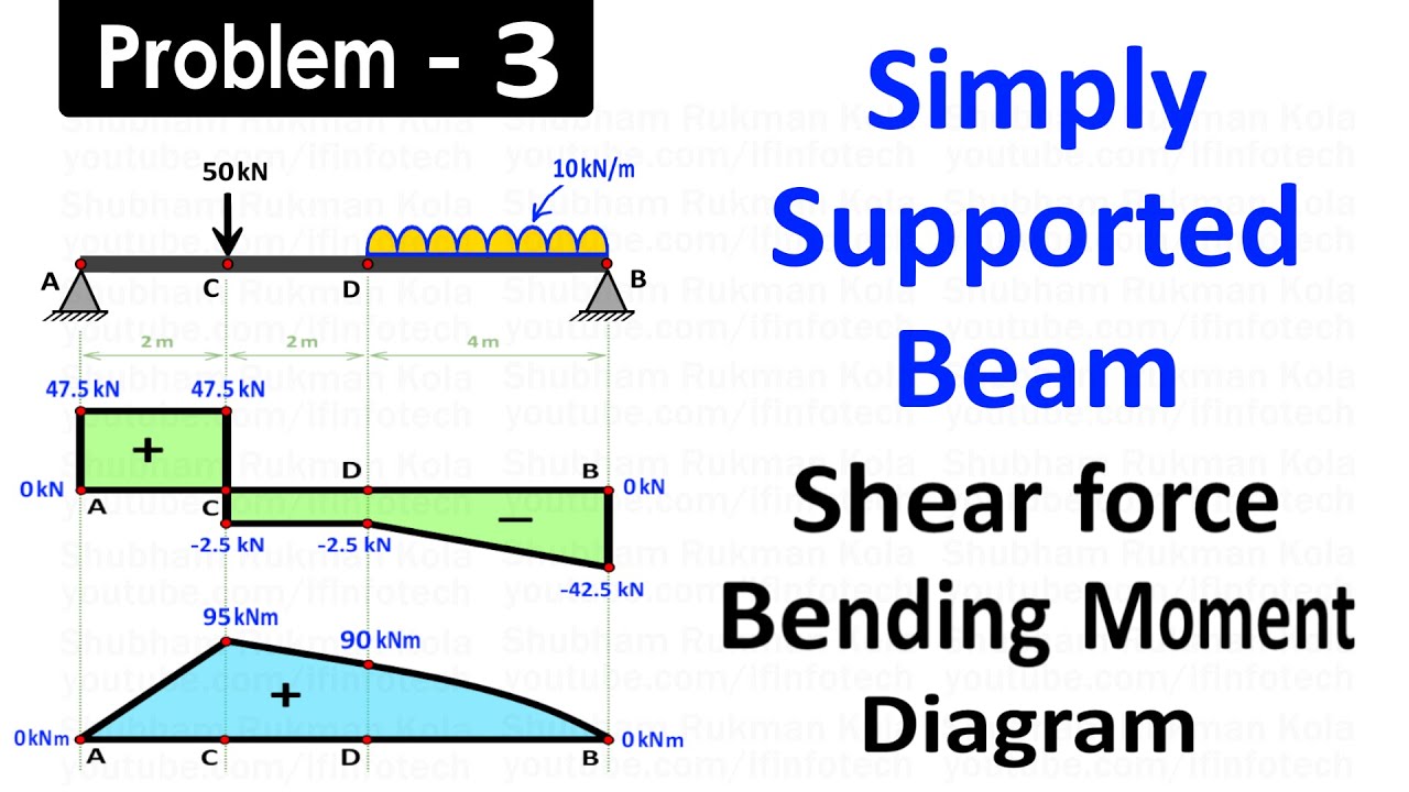 Draw Shear Force and Bending Moment Diagram for Simply Supported Beam Carrying UDL and Point Load